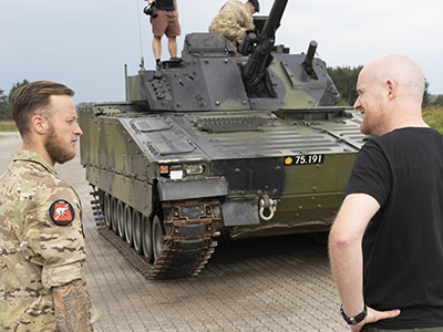 For Claus, der selv har en mangeårig baggrund i Forsvaret, føltes det næsten som at være tilbage på hjemmebane. For Sebastian var det en helt ny og spændende oplevelse at få en dag i “trøjen” og komme tæt på forsvarets maskiner og miljø.